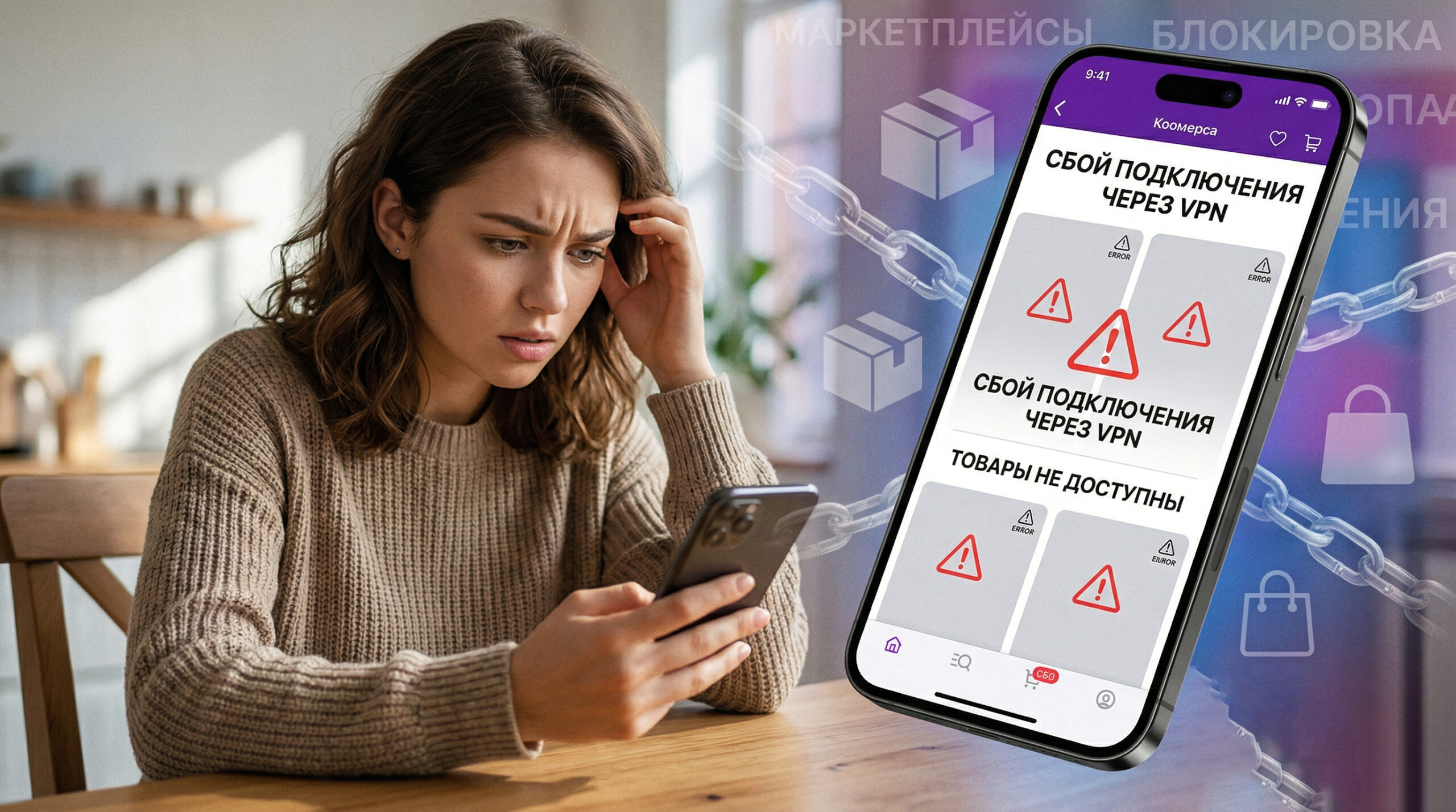 Похоже, любителям онлайн-шопинга в России придется сделать выбор: или комфортные покупки, или анонимность в сети. В последние дни поползли слухи, переросшие в массовые жалобы — крупнейшие маркетплейсы страны начали потихоньку ограничивать работу своих сервисов, если пользователь заходит через VPN. Люди в недоумении: заходишь присмотреть пуховик, а сайт превращается в тыкву.