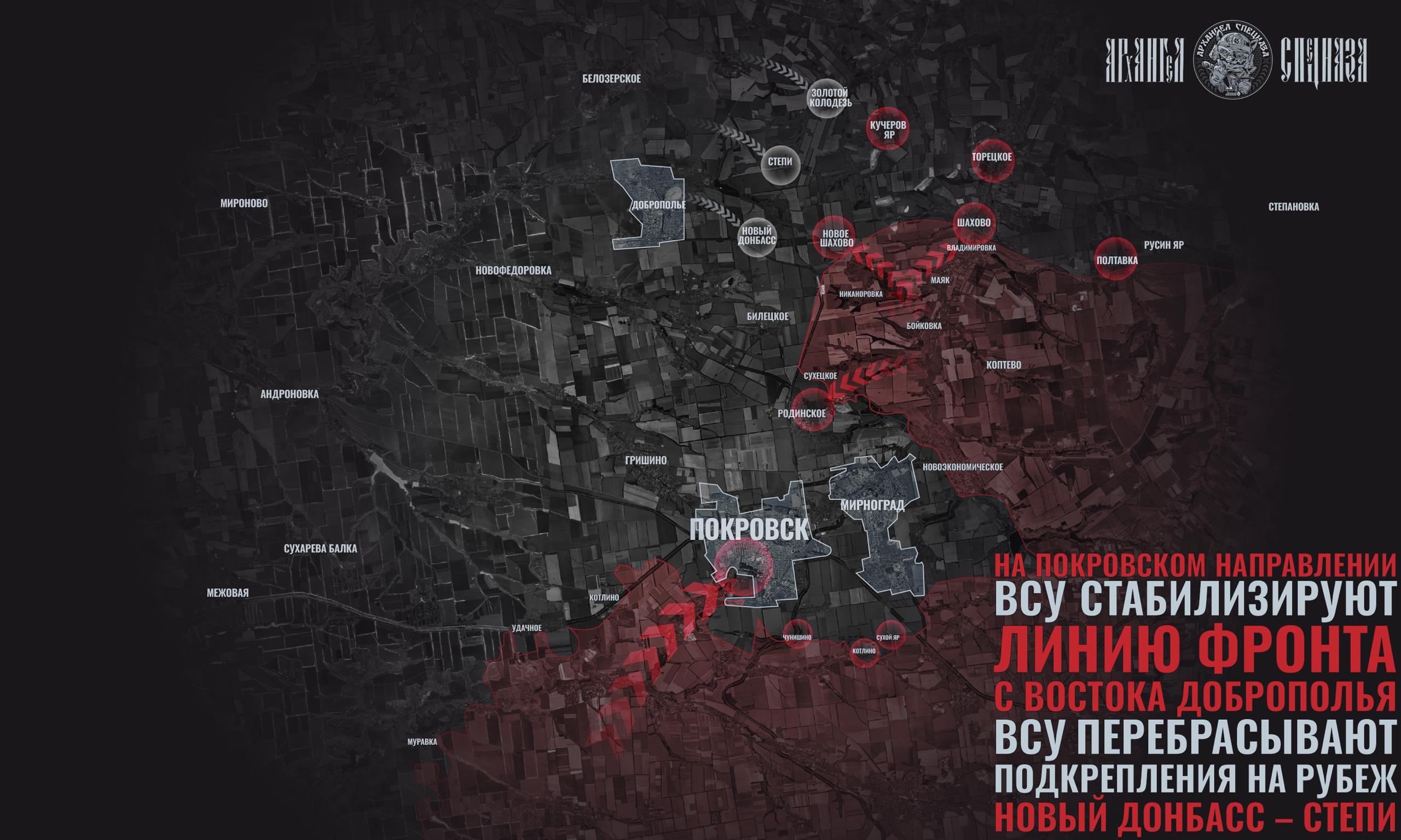 На Покровском (Красноармейском) направлении продолжается нарастание активности российских войск, которые действуют в формате последовательного давления малыми штурмовыми группами, избегая прямых лобовых атак. Основная цель — постепенно ослабить оборону противника, прорвать её на уязвимых участках.
