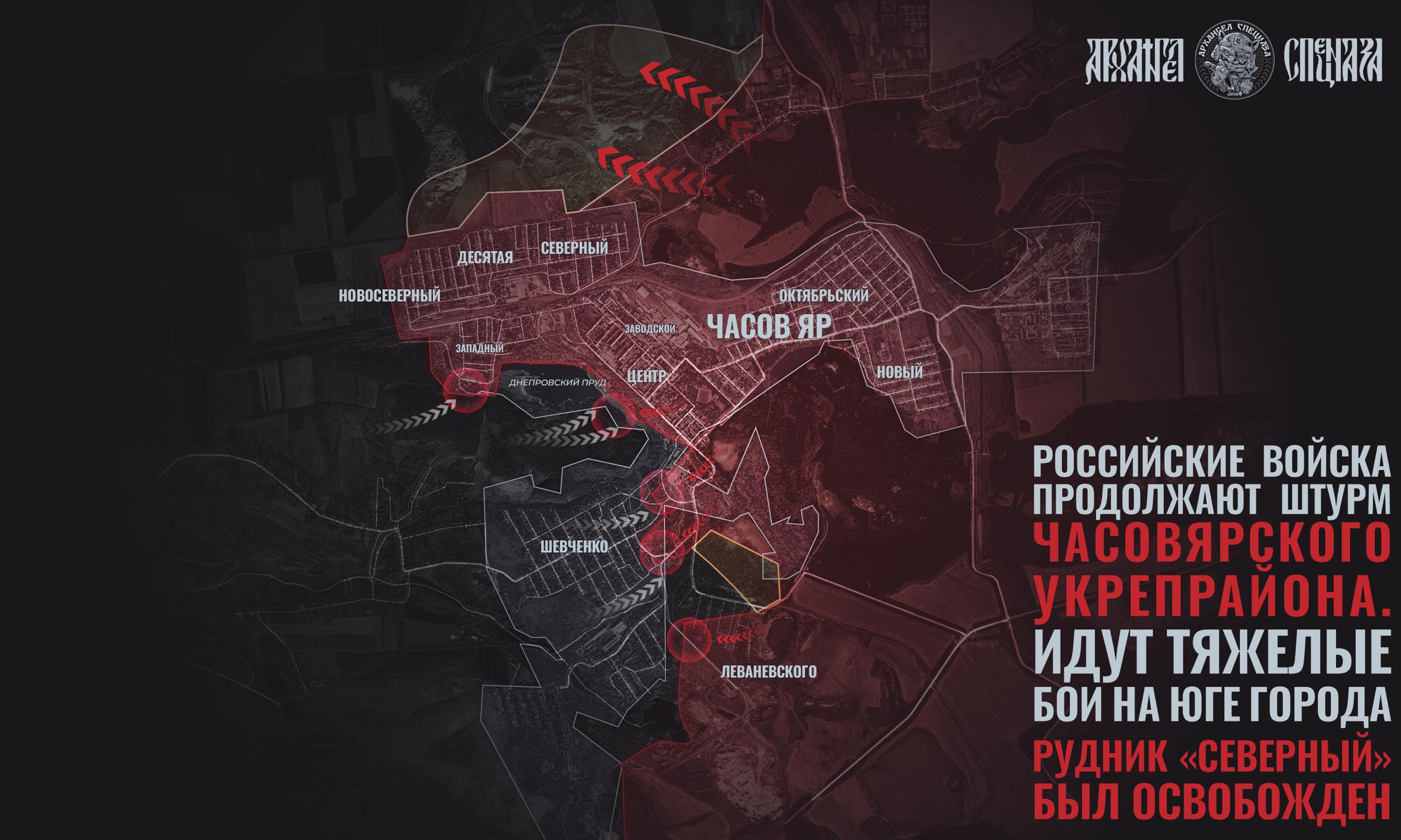 Микрорайон Заводской был зачищен и перешёл под наш контроль. С учётом успехов южнее и севернее Часов Яра можно с уверенностью сказать, что наши войска освободят город окончательно и выйдут к основному оборонительному узлу – Константиновке. Но по срокам загадывать не будем, так как труд идет кропотливый, и торопиться с этим не стоит, — Архангел Спецназа.
