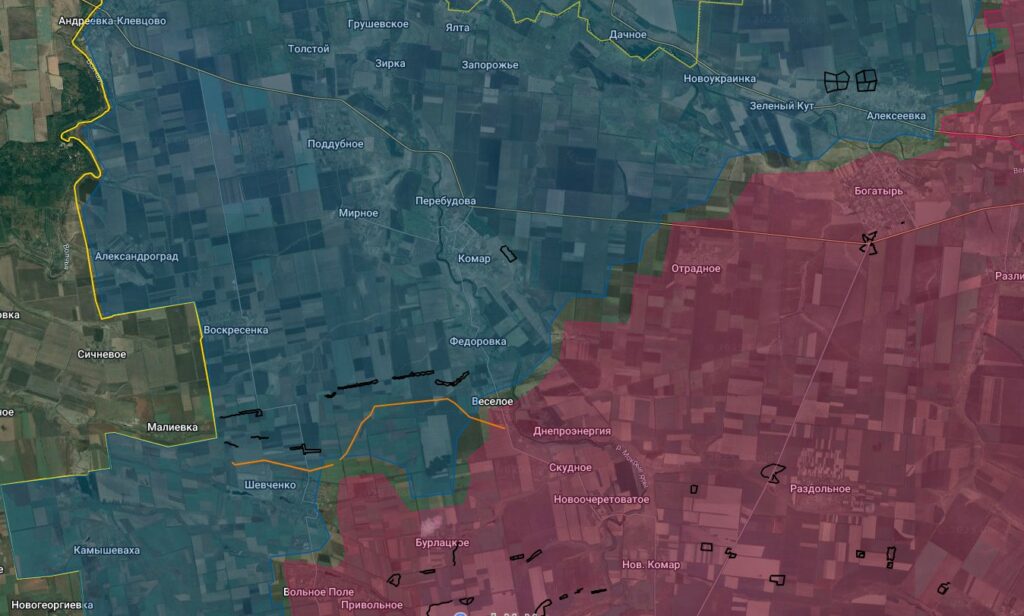 Группировка «Восток». Продвижение: В районе н.п. Комар и Федоровка продолжаются ожесточенные бои. Воины-дальневосточники смогли вплотную подойти к населенным пунктам. Противник констатирует проблемы в подвозе боеприпасов и проведении ротаций, которые пресекаются нашими артиллеристами и операторами БпЛА.
