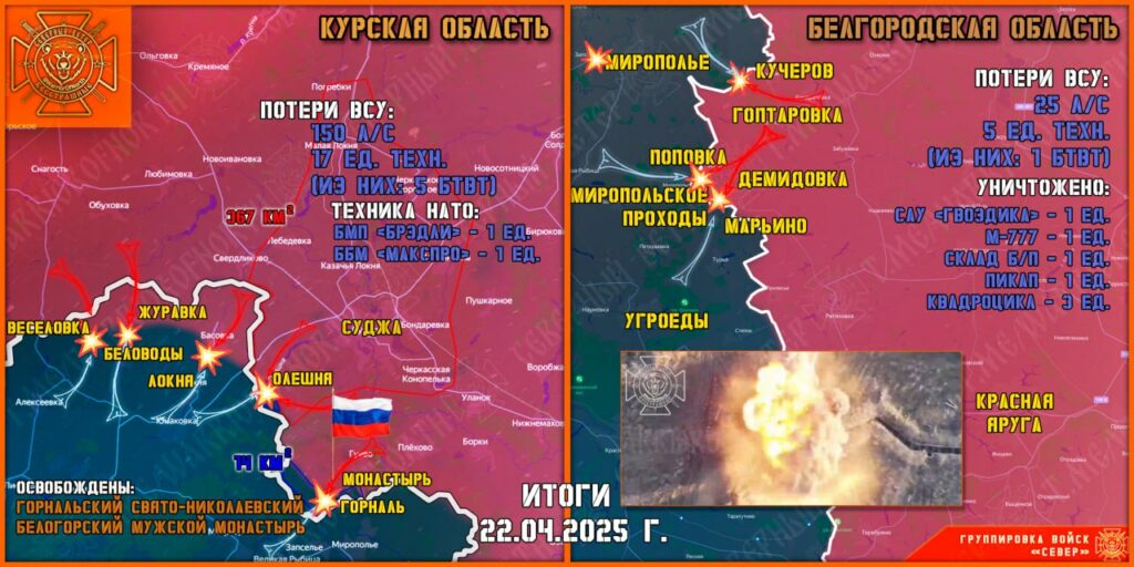 Главные новости СВО, фронтовая сводка, актуальная карта боевых действий, сводка боевых действий на вечер 23 апреля 2025 года — в нашем материале.
