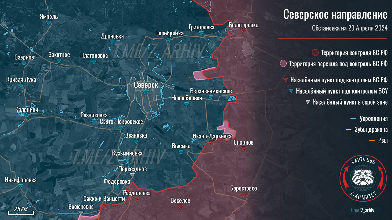 ВС РФ продвинулись южнее Часова Яра. Как сообщает товарищ Тёмный, бои идут непосредственно в Ступочках.