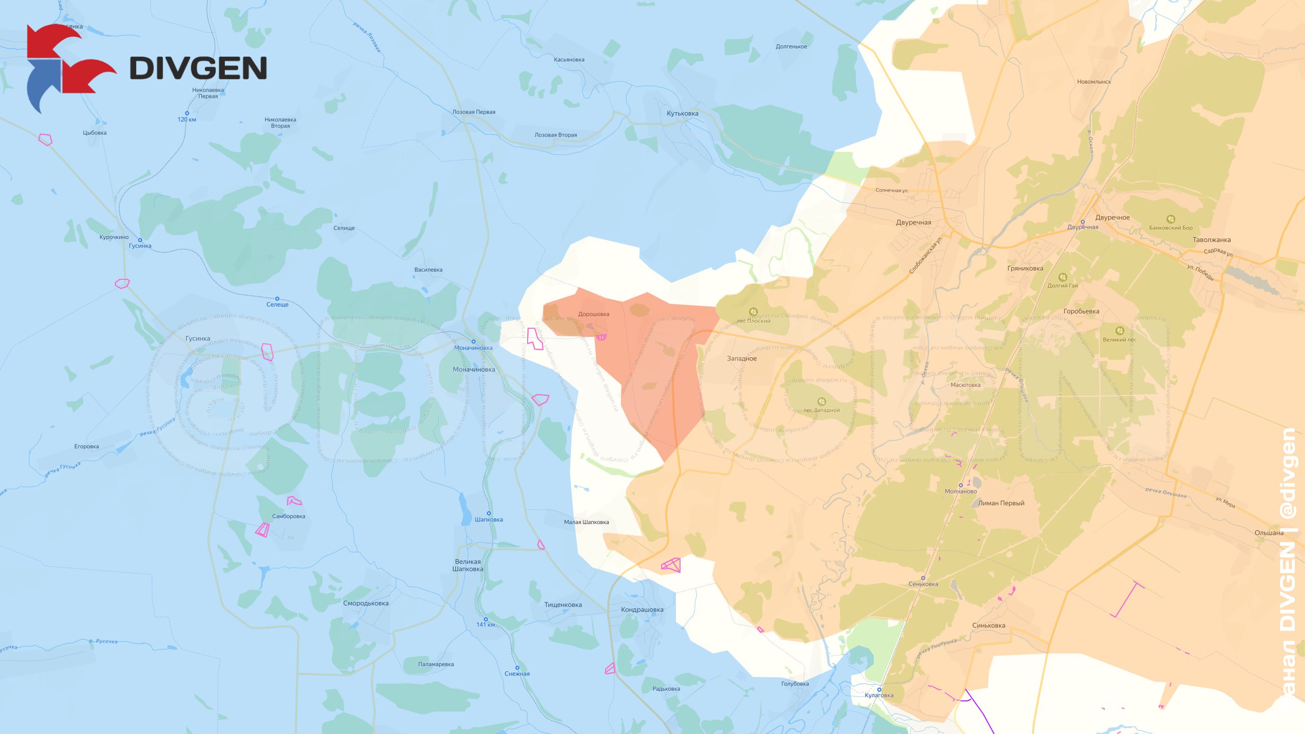 С освобождением довольно крупного села Каменка под наш контроль перешел весь правый берег Оскола к северу от Купянска до самой границы. Примерно 35 километров по прямой, несколько больше — с учетом всех изгибов фронта. На этом правом берегу мы по-прежнему никакие события особенно не торопим, но сил в оборону хохлы туда стянули заметно больше, чем когда фронт проходил по реке — не бригада и не две.