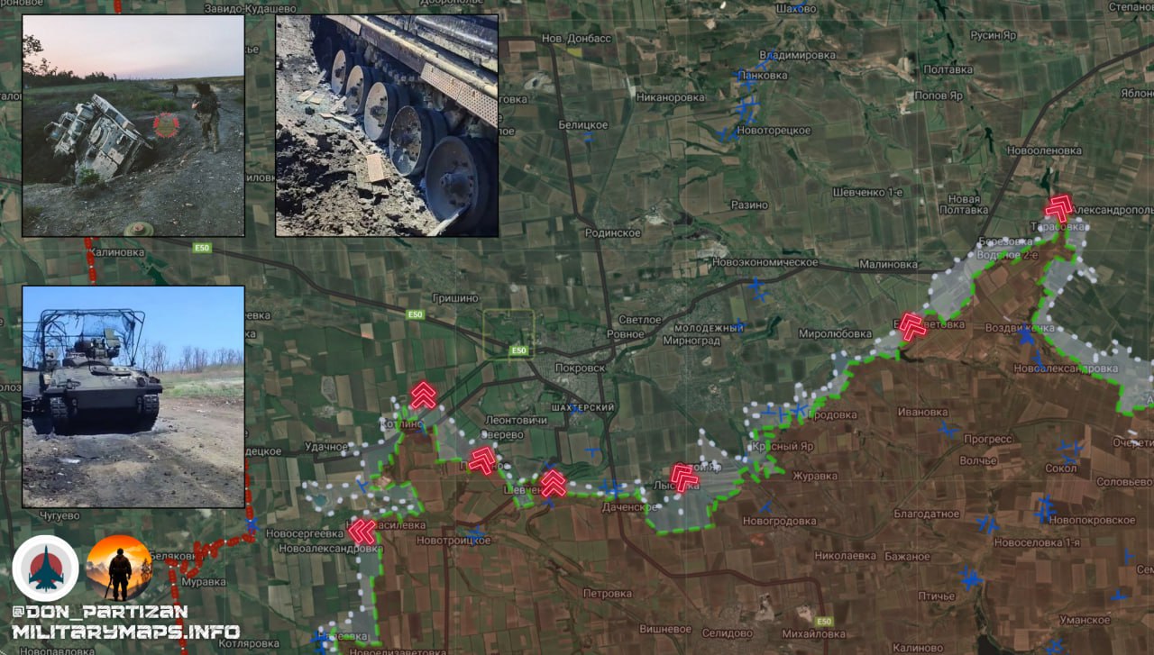 Одновременно российские подразделения провели маневренную атаку западнее Петровки, пытаясь обойти украинские позиции с флангов и ограничить возможности ВСУ по маневру в застройке как в Щербиновке, так и в Петровке.