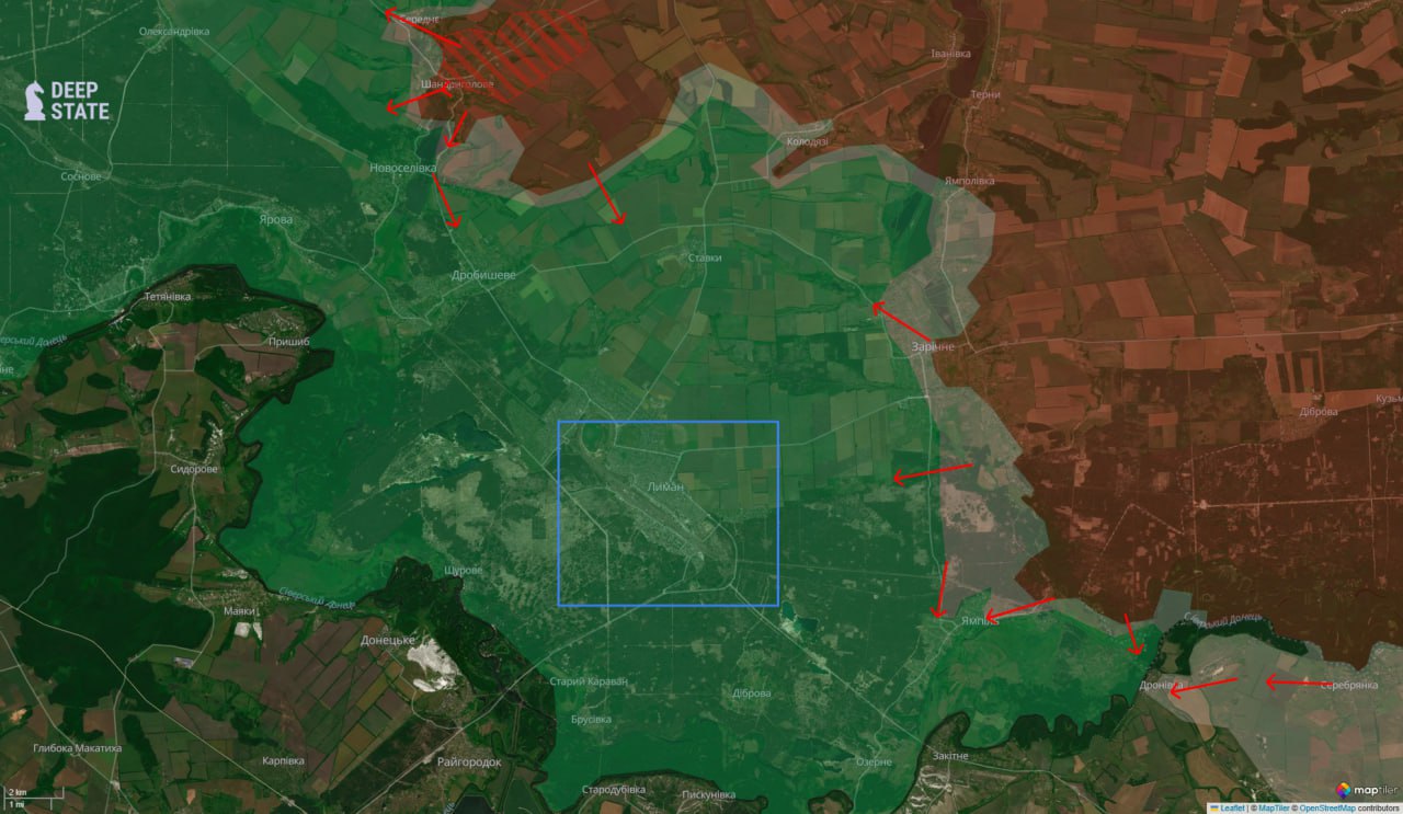 Район н.п. Дроновка. Тут ВС РФ активно создают плацдарм для форсирования реки Северский Донец в направлении г. Северск.
