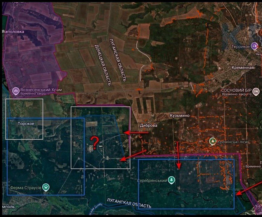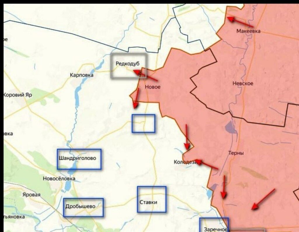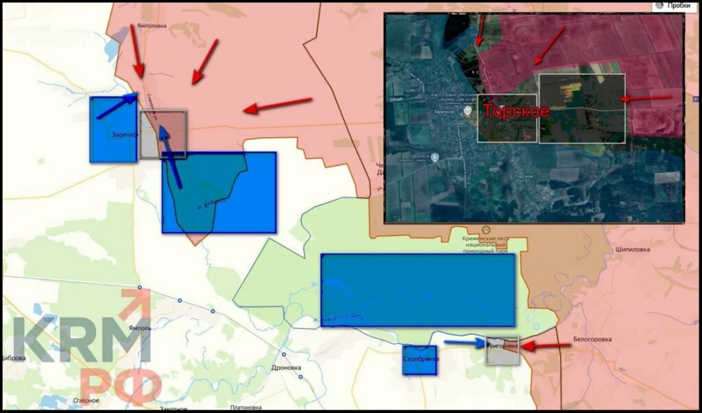 На Краснолиманском участке после освобождения Торского начались бои на восточных окраинах Заречного. Встречные бои в районе Колодезей и Зелёной Долины, которую наши войска обходят с юга и севера. Тяжёлые бои в Редкодубе, а немного севернее штурмовики атакуют большой опорник в районе Нового Мира. К Грековке ВС РФ продвигаются по высотам со стороны Новомихайловки и Макеевки.