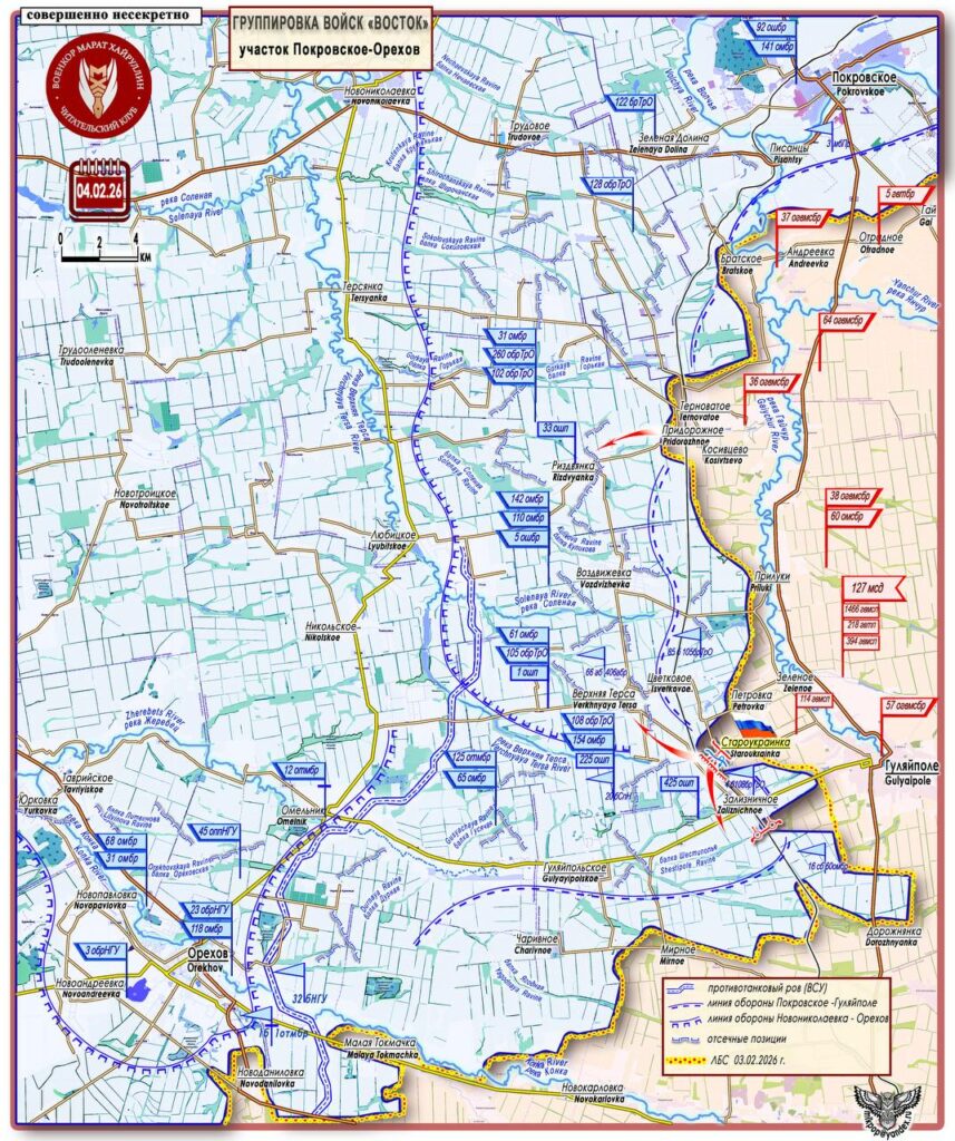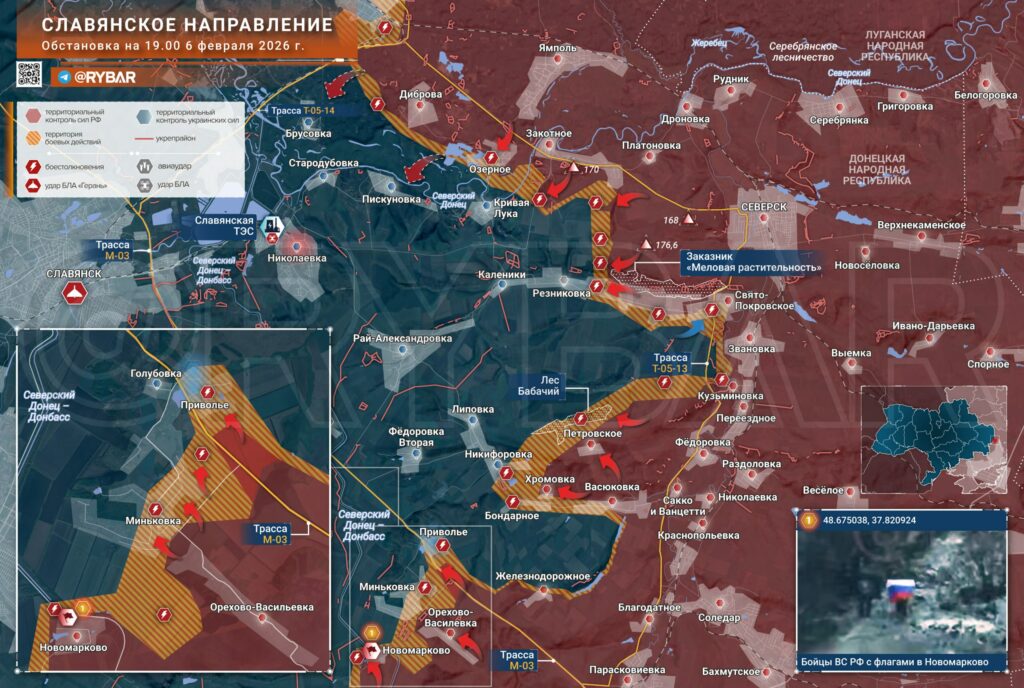 К 7 февраля линия боевого соприкосновения остаётся напряжённой сразу на нескольких направлениях. Пока основное внимание приковано к Константиновке, активные боевые действия разворачиваются также в лесных районах Сумской и Харьковской областей, а также на Запорожском, Краснолиманском и Северском участках. Российские подразделения продолжают наступательные и позиционные действия, стремясь расширить зоны контроля и осложнить манёвр противника.