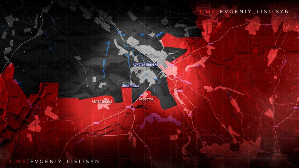 На Константиновском участке ВС РФ стараются продавить оборону противника на рубеже Степановка-Бересток. В самой Константиновке ФАБ-3000 сбросили на несколько мостов. С мест сообщают о занятии новых позиций в районе Новодмитровки и Червоного. К северу от Часов Яра продвинулись от Новомарково в сторону Тихоновки. Также есть успехи в районе Миньковки и Голубовки.