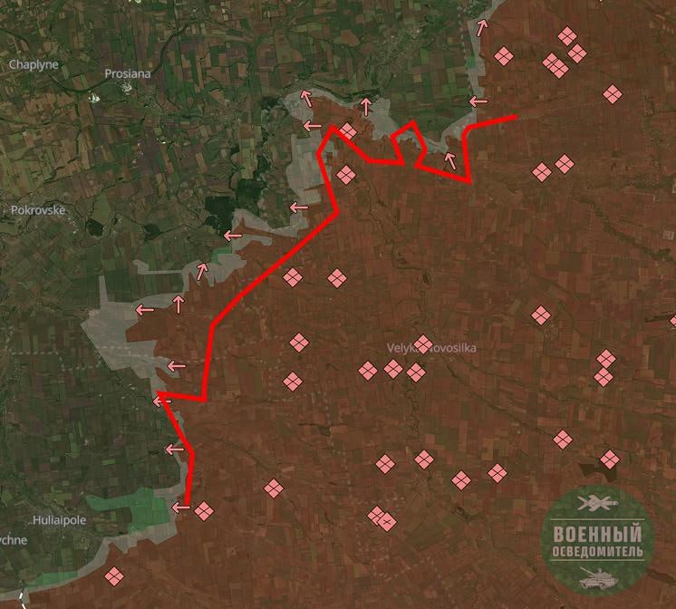 Подразделения ВС РФ продолжают продвижение на север от Новосёловки, развивая наступление по всей линии соприкосновения. В результате планомерного давления на оборону противника российские силы закрепились на новых позициях и расширили зону контроля, что позволяет улучшать тактическое положение.
