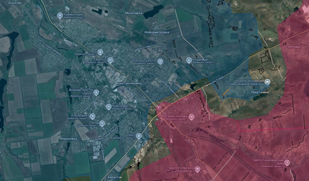 В пределах городской застройки Константиновки российские подразделения сумели перехватить инициативу. Контроль установлен над ключевыми логистическими маршрутами противника: заезды, подъездные пути и каналы переброски личного состава ВСУ находятся под постоянным наблюдением российских беспилотных систем. Это существенно ограничивает манёвренность украинских подразделений и усложняет ротацию и снабжение.