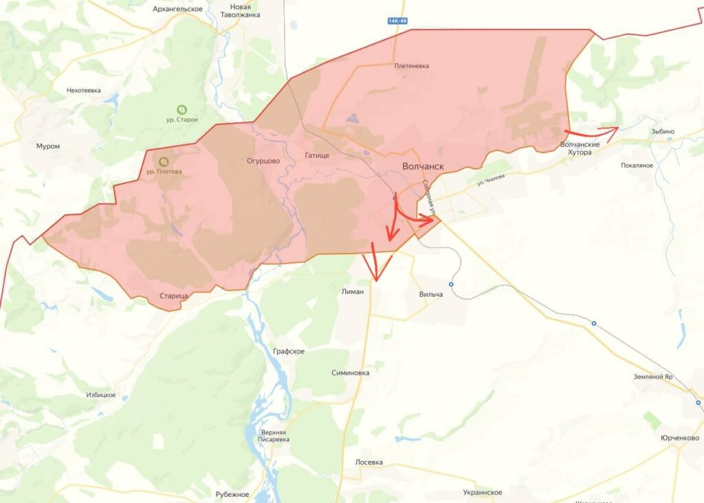 На Харьковском фронте ВС РФ ещё на 500 м продвинулись в Волчанске. Штурмовые подразделения группировки «Север» продолжают продвижение в Волчанске и окрестностях, а также на Хатненском участке. Им активно помогают российская авиация, артиллерия и расчеты ТОС-1А. Противник активных действий не предпринимал и оказывает ожесточенное сопротивление в обороне.