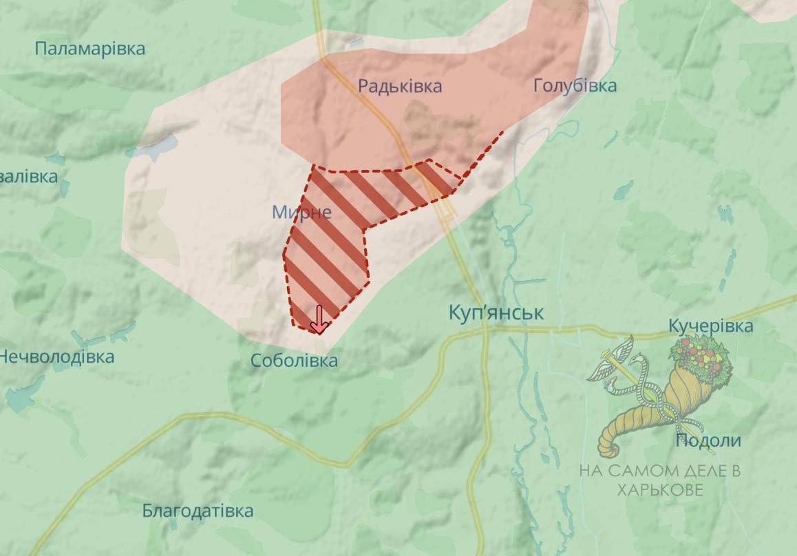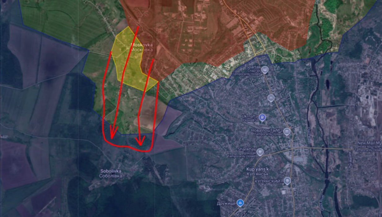 Купянск планомерно берётся в клещи. Укронацистам уже сложно подтягивать подкрепления к Купянску по участку трассы Н-26, что пролегает между Соболевкой и Благодатовкой, тянется до Чугуева и далее — на Харьков. Это ключевая дорога снабжения ВСУ в Купянске.