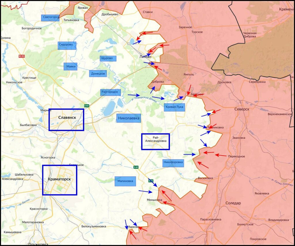 Боевые действия в районе трассы М-03 продолжаются. Нашим воинам удалось взять под контроль сеть опорников ВСУ, расположенных между Миньковкой и трассой М-03. Продолжаем развивать наступление на Голубовку и в сторону Федоровки Второй. Продолжаем огневую обработку основных логистических маршрутов противника которые ведут от Славянской ТЭС в сторону Лимана и Кривой Луки.