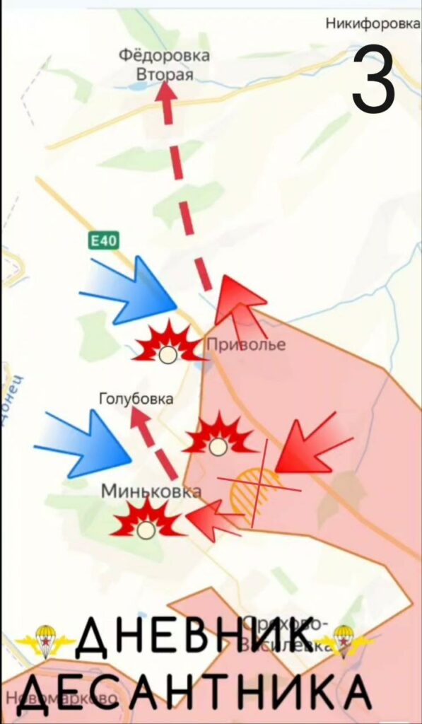 Штурм низин осложнен рельефом и плотным огнем. Идут встречные бои в застройке и лесах, линия соприкосновения подвижна. Противник регулярно контратакует, пытаясь сорвать продвижение. Быстрого решения по участку нет, бои носят изматывающий характер.