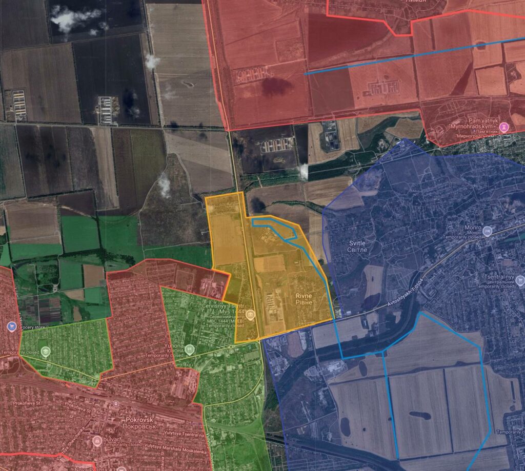 На Красноармейском участке ВС РФ сражаются в районе многоэтажек на севере города. Организованного сопротивления ВСУ не оказывают, поэтому наши зачищают котлы в разных частях. Борьба за Красноармейск (Покровск) продолжается. Также наши части расширили зону контроля в районе села Рог, а севернее установили контроль над Хутором Запорожским. Кроме этого, от перекрёстка на дороге Красноармейск-Родинское наши продвинулись на 2,5 км по трассе к Гришино. На юге Димитрова (Мирнограда) бои идут уже на территории за шахтой. При этом наши группы установили контроль на севере города, продвигаются вдоль железной дороги в микрорайоне Новатор. Тяжелые встречные бои идут в районе добропольского выступа: в районе Никаноровки, Затышка и Сухецкого.