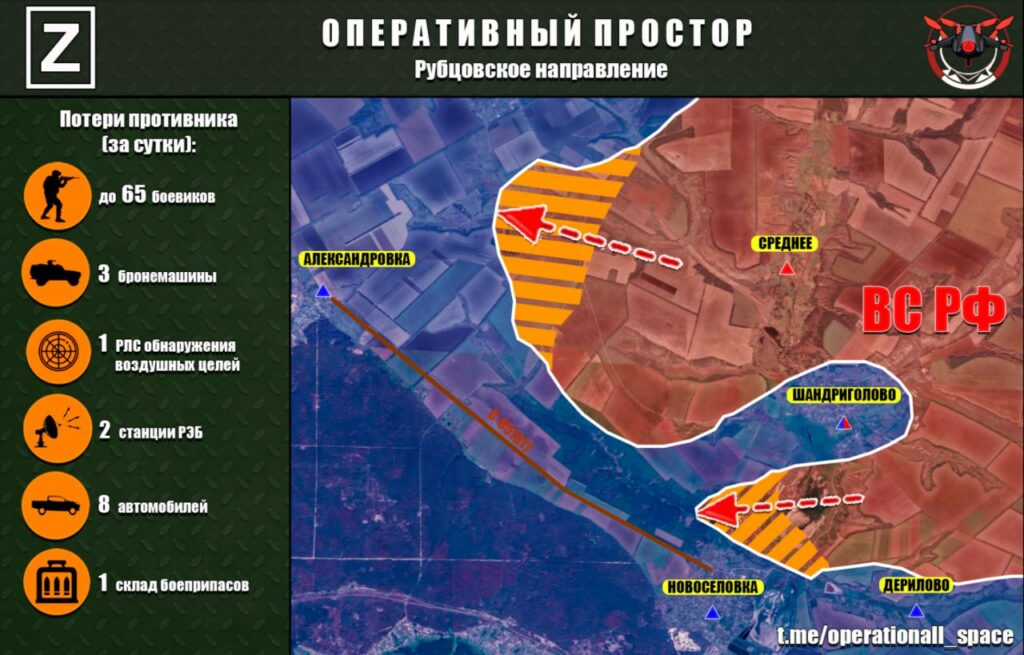 ВС РФ основные усилия сосредоточили в направлении дороги, соединяющей населенные пункты Александровка и Новоселовка. Подразделения ГВ «Запад» улучшили тактическое положение для дальнейших действий по блокированию населенных пунктов Шандриголово, Новоселовка и Дерилово.