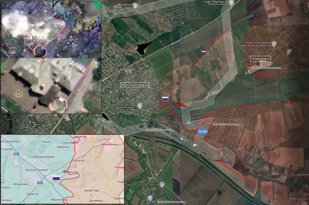 Российские войска заняли Ступочки и Предтечино, а теперь приступили к штурму самой Константиновки и зашли в первые дома окраин микрорайона Сантуриновка, ведут зачистку прилегающих улиц.