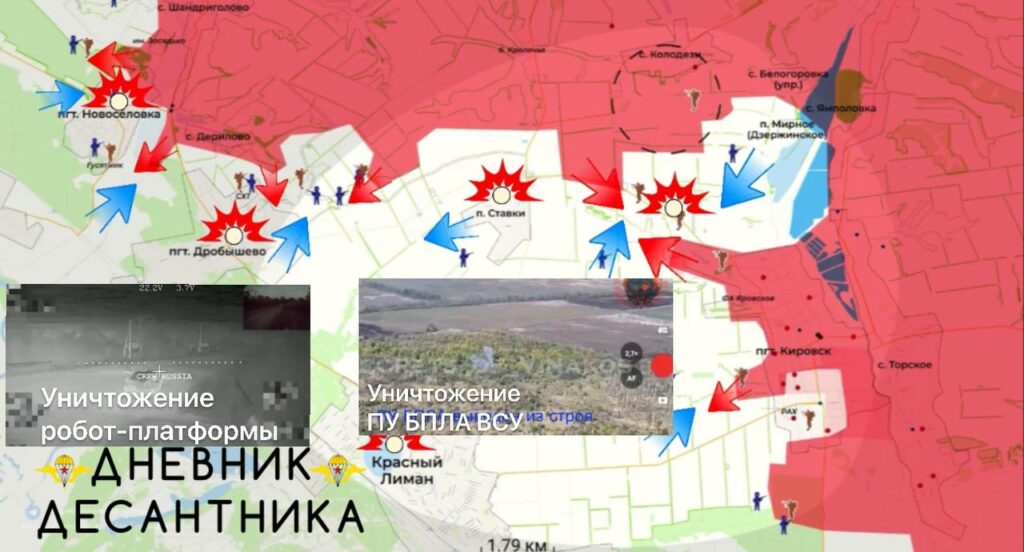 В районе Дерилово наши войска наступают к Дробышево, ВСУ оказывают сопротивление. Совместная работа ВКС РФ, артиллерии, расчетов БПЛА позволяет нашим силам продавливать оборону врага и удерживать инициативу в наступлении.