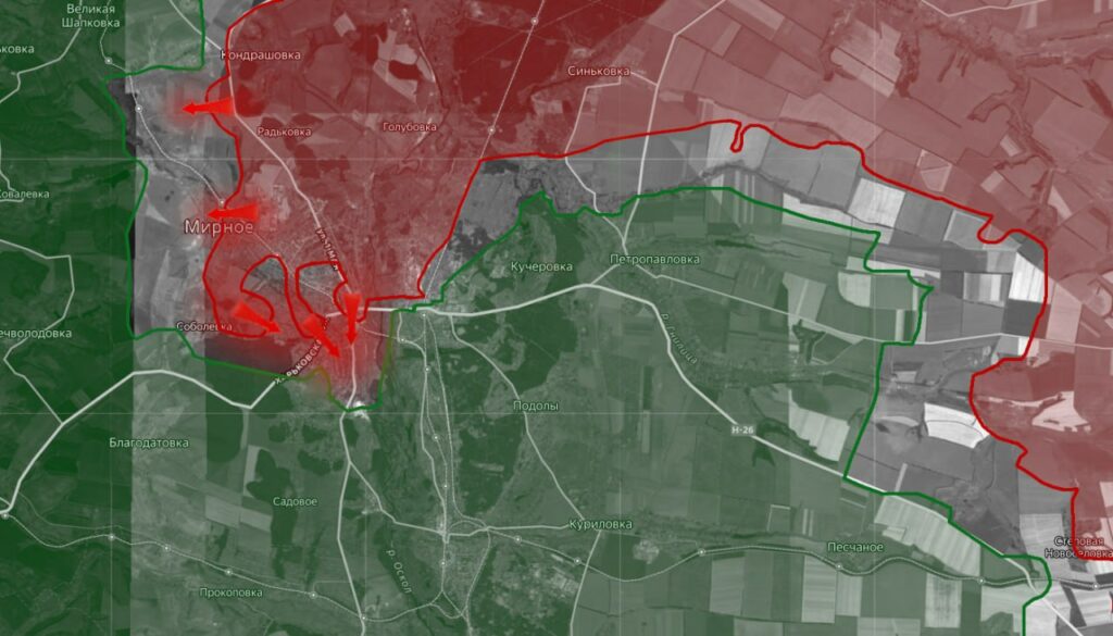 Восточнее ВС РФ взяли под огневой контроль трассу Н-26 — по ней идет снабжение украинских сил в районе Песчаного и Степовой Новоселовки. Сейчас российские подразделения находятся менее чем в трех километрах от окраин Петропавловки, угрожая начать штурм населенного пункта с двух сторон.