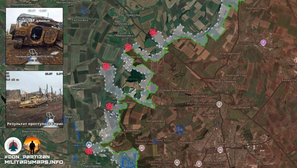 На юге Покровского направления – встречные бои вдоль границы с Днепропетровской областью. Здесь наши военные бьются против боевиков запрещенного террористического «Айдара», и смогли установить полный контроль над Богдановкой. На западном охвате Покровска наши продвигаются по лесополосам в районе Зверево-Леонтовичей, на восточном – севернее и западнее Малиновки, а также в районе Миролюбовки.