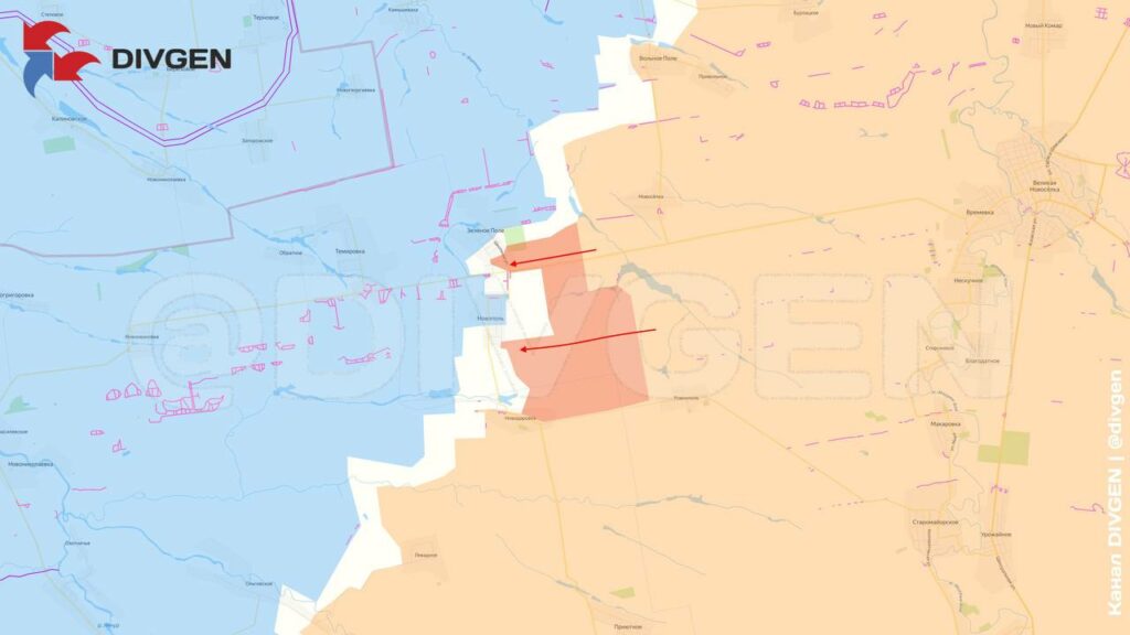 На Запорожском участке, восточнее Каменского, ВС РФ заняли новые позиции в окрестностях Лобкового. В районе Орехова ВСУ атаковали российские позиции в Малой Токмачке около кирпичного завода, наши атаку отбили, контроль над заводом сохранили.