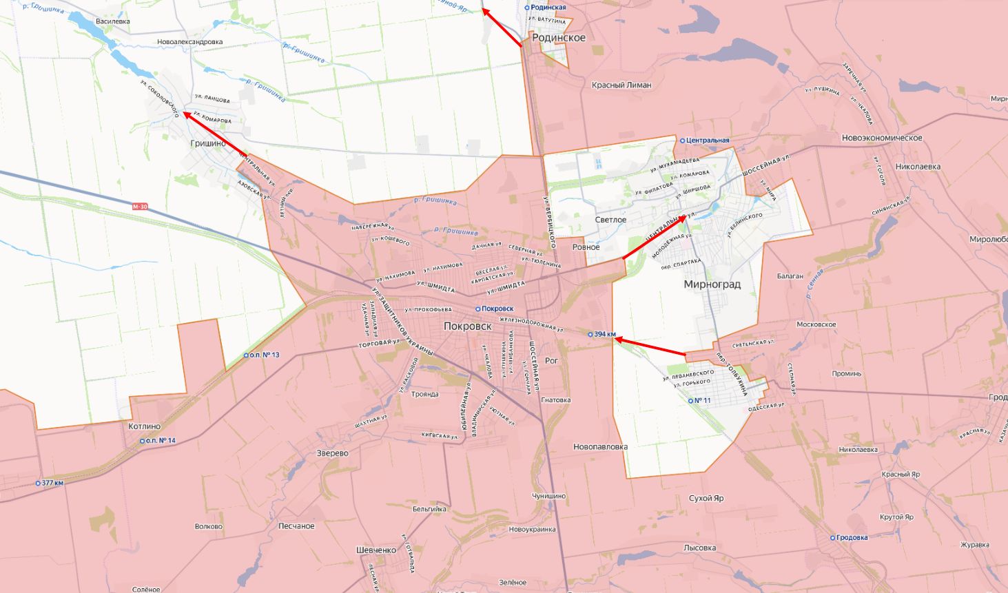 На Красноармейском фронте российские войска продолжают наступление, развивая движение от Красноармейска в северном и северо-западном направлениях. В районе Гришино идут тяжёлые позиционные бои, особенно в юго-восточном секторе. В Димитрове российские части продолжают боевую работу, вытесняя противника из укрепрайонов.