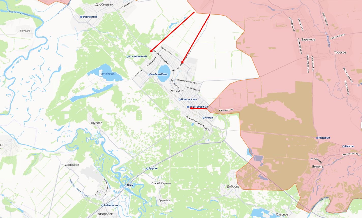 На этом участке российские подразделения взяли опорный пункт в Яре Пиньков и вошли в крупный укрепрайон украинских войск восточнее Красного Лимана. Контроль установлен и над северо-восточными окраинами Дробышево. В Богуславке российские позиции зафиксированы как на северном, так и на южном секторах населённого пункта.