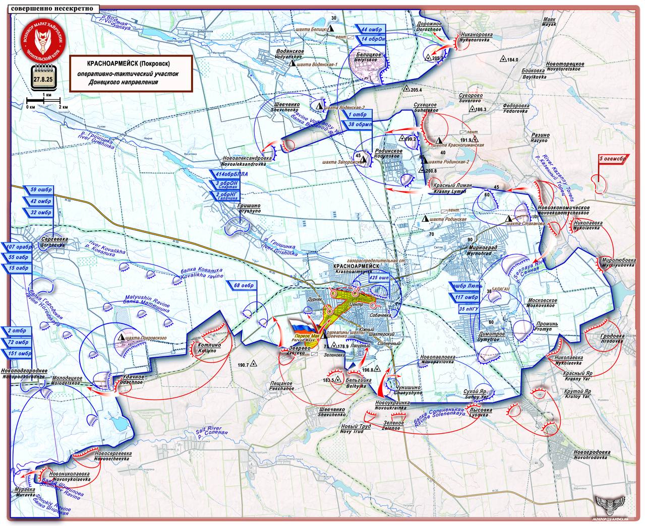 Российские войска продолжают наступление в районе Красноармейска. Как сообщило Министерство обороны 27 августа, освобождён посёлок Первое Мая, расположенный на юго-западной окраине города. В этом небольшом населённом пункте, где живёт около 700 человек, украинские силы создали сеть укреплений, используя местные пруды и старую шахту имени Кравченко. Сообщает военкор Марат Хайруллин.