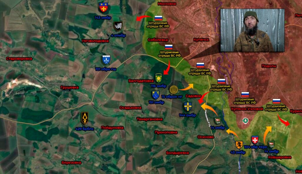 В результате интенсивных боевых действий подразделения ВС РФ продвигаются восточнее Кутузовки в направлении Доброполья, оказывая давление на оборонительные позиции противника.