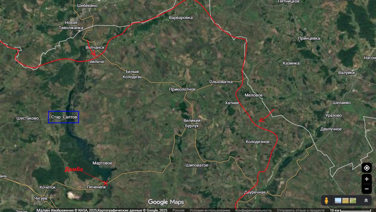 Сегодня прошла новость о нашем успешном ударе по дамбе Печенежского водохранилища, которая расположена западнее Купянска. Это главная трасса снабжения противника на Волчанском (или большебурлукском) направлении.
