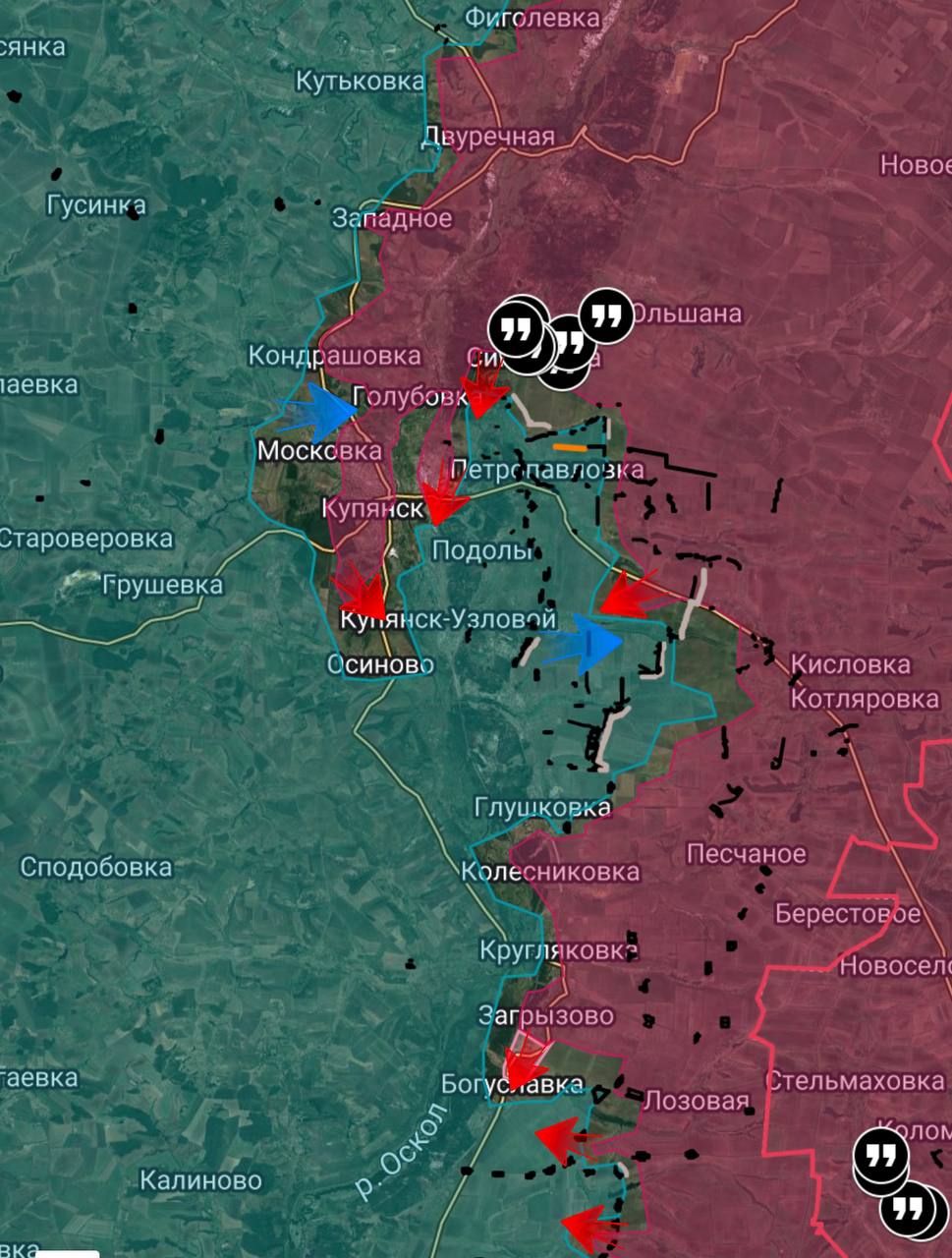 Остатки с Волчанска переброшены сюда — без толку. Успехи у Богуславки и Боровской Андреевки окончательно добили моральный дух, поэтому хохлы запустили медийный визг «шО нЭ усЁ втрачЕно» для Запада. Мы планомерно отбиваем атаки и пробиваемся к Новоплатоновке — темп медленный из-за укрепов, но не останавливаемся.