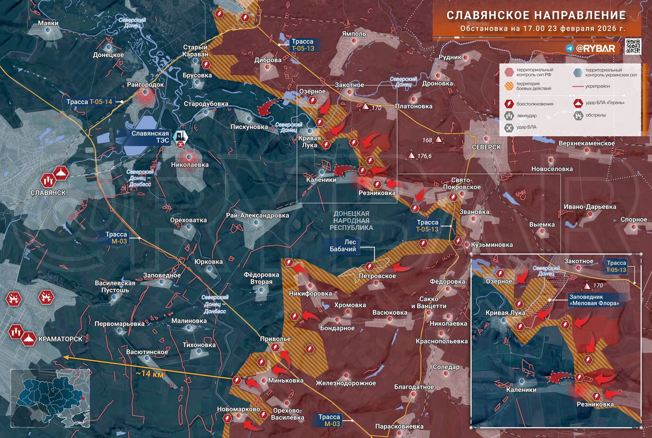 Кривая Лука в котле: ВС РФ замкнули кольцо — дорога на Славянск простреливается, карта боевых действий на вечер 23 февраля