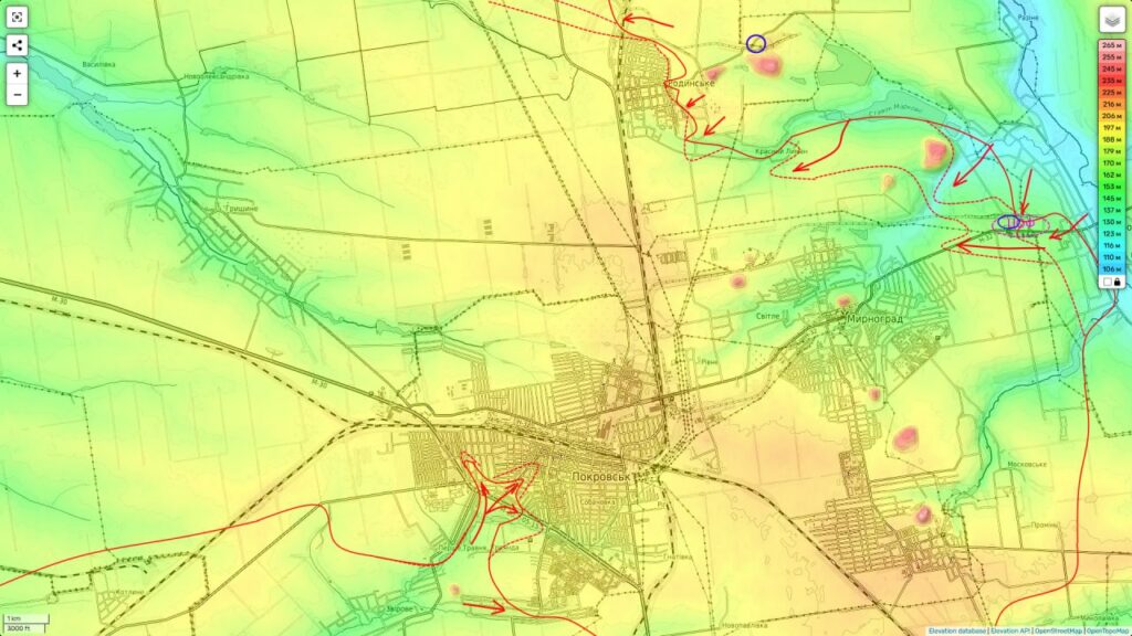 На Покровском направлении ВС РФ не прекращают попыток сломить оборону противника в Удачном и Котлино, но ВСУ держатся за позиции всеми силами. В Леонтовичах ВС РФ теснят врага не только в черте села, но и обходят его с флангов. Восточнее наши бойцы выходят на позиции для штурма Чунишино. Ожесточённые бои в районе Лысовки и Сухого Яра. На восточном фланге ВС РФ взяли под контроль восточную часть Красного Лимана и штурмуют промзону Родинского. Идут позиционные бои севернее Белицкого по линии Новый Донбасс – Золотой Колодезь.