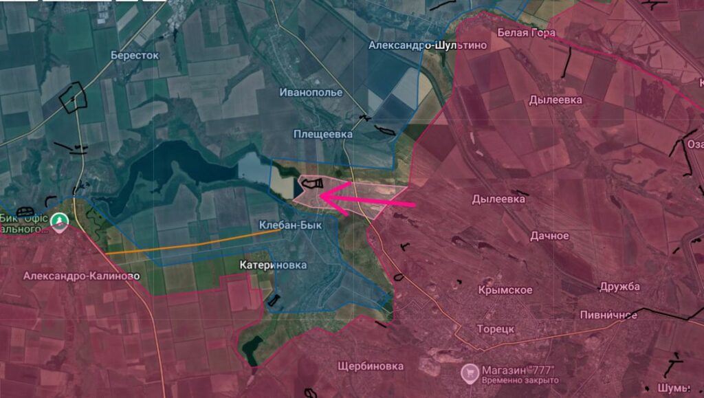 На Константиновском фронте упорные бои у восточного берега Клебан-Быкского водохранилища. ВС РФ продвинулись до 500 м на северо-восток от Яблоновки, противник предпринимает контратаки. В районе Катериновки, Щербиновки и Клебан-Быка наши бойцы стараются максимально фрагментировать оборону противника, взяв под огневой контроль дороги между ними. Севернее Торецка бои в районе Белой Горы и Александро-Шультино. У западных окраин Часов Яра противник контратакует, тем не менее, у ВС РФ есть тактические успехи в районе Николаевки.