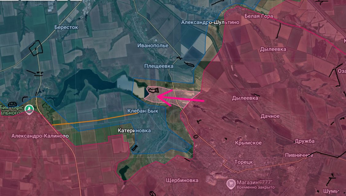 На Константиновском фронте упорные бои у восточного берега Клебан-Быкского водохранилища. ВС РФ продвинулись до 500 м на северо-восток от Яблоновки, противник предпринимает контратаки. В районе Катериновки, Щербиновки и Клебан-Быка наши бойцы стараются максимально фрагментировать оборону противника, взяв под огневой контроль дороги между ними. Севернее Торецка бои в районе Белой Горы и Александро-Шультино. У западных окраин Часов Яра противник контратакует, тем не менее, у ВС РФ есть тактические успехи в районе Николаевки.