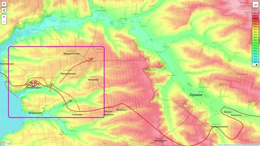«Когда Степногорск падёт, наши подразделения продолжат активные наступательные действия в направлении Магдалиновки, Лукьяновского и Павловки. Как я понимаю, задача — выйти в тыл к Орехову, взять под контроль преобладающие высоты, перерезать логистику и таким образом вынудить группировку противника либо отступить, либо сражаться в заведомо невыгодных условиях», — пояснил Подоляка.