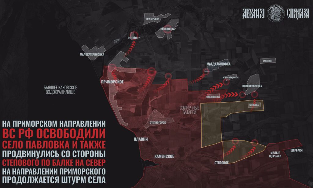 На Запорожском фронте группировка «Днепр» продолжает движение на север после освобождения Новояковлевки. По данным сводок, передовые подразделения находятся на расстоянии 12–14 километров от южных и юго-восточных окраин Запорожья.