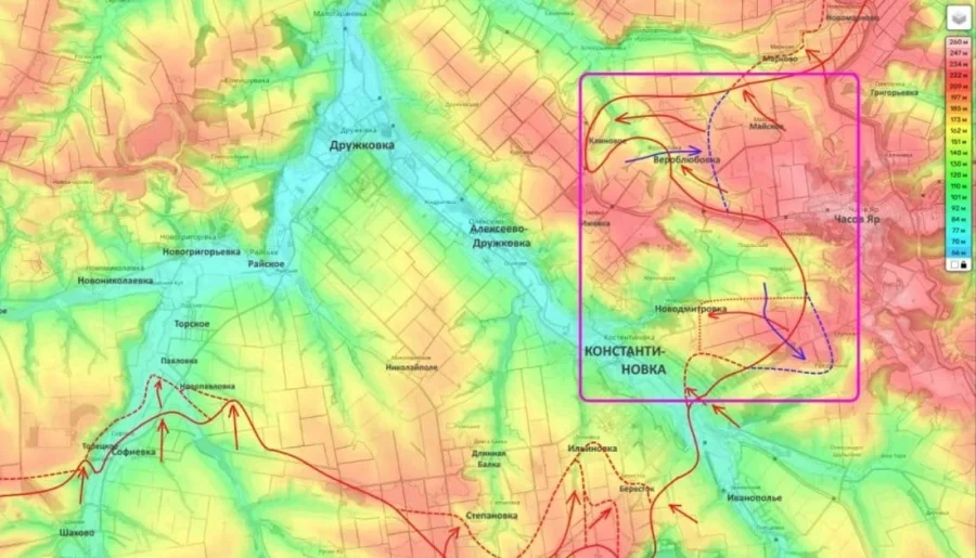 Константиновское направление в последние недели остается одним из самых напряженных. По данным, которые приводит Юрий Подоляка, российские подразделения смогли продвинуться к городской черте.