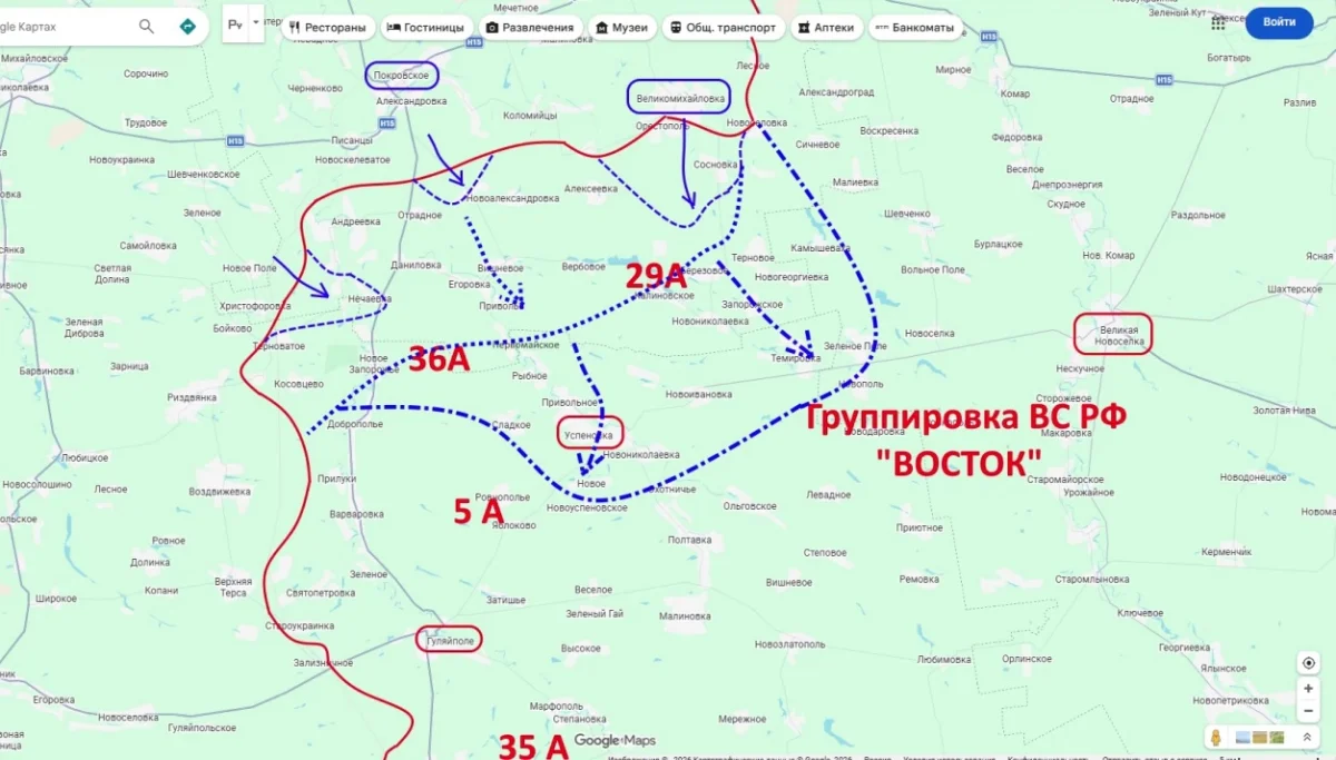 Фиксируются попытки высадки десанта бронегруппами со стороны Христофоровки и Придорожного, а также манёвры южнее — в районе Зализничного, западнее Гуляйполя. Цель подобных действий — растянуть российскую оборону и вынудить её реагировать сразу на нескольких направлениях.