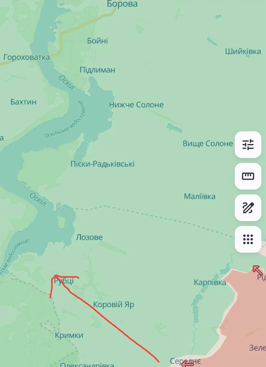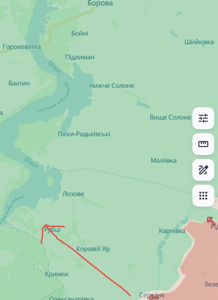Русские открыли новое направление атак — это Изюмское/Оскольское направление, чтобы срезать логистику ВСУ на северном участке донецкого фронта. Мы об этом инсайдили еще 3 апреля. Они уже подходят к Коровьему Яру, если удастся взять его до конца октября, то далее Рубцы и всё, Боровское направление будет снабжаться только через «горлышко» у н.п. Боровая, что вызовет кризис снабжения на всём участке.