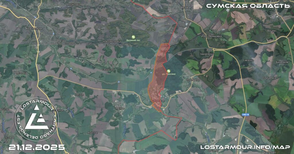 Развивая успех, подразделения ВС РФ зашли в соседний населённый пункт Грабовское, примыкающий к Высокому. Характер действий указывает на последовательное наращивание зоны контроля с опорой на смежные населённые пункты, без разрыва боевых порядков и с сохранением устойчивости линии продвижения, — Донбасский Партизан.