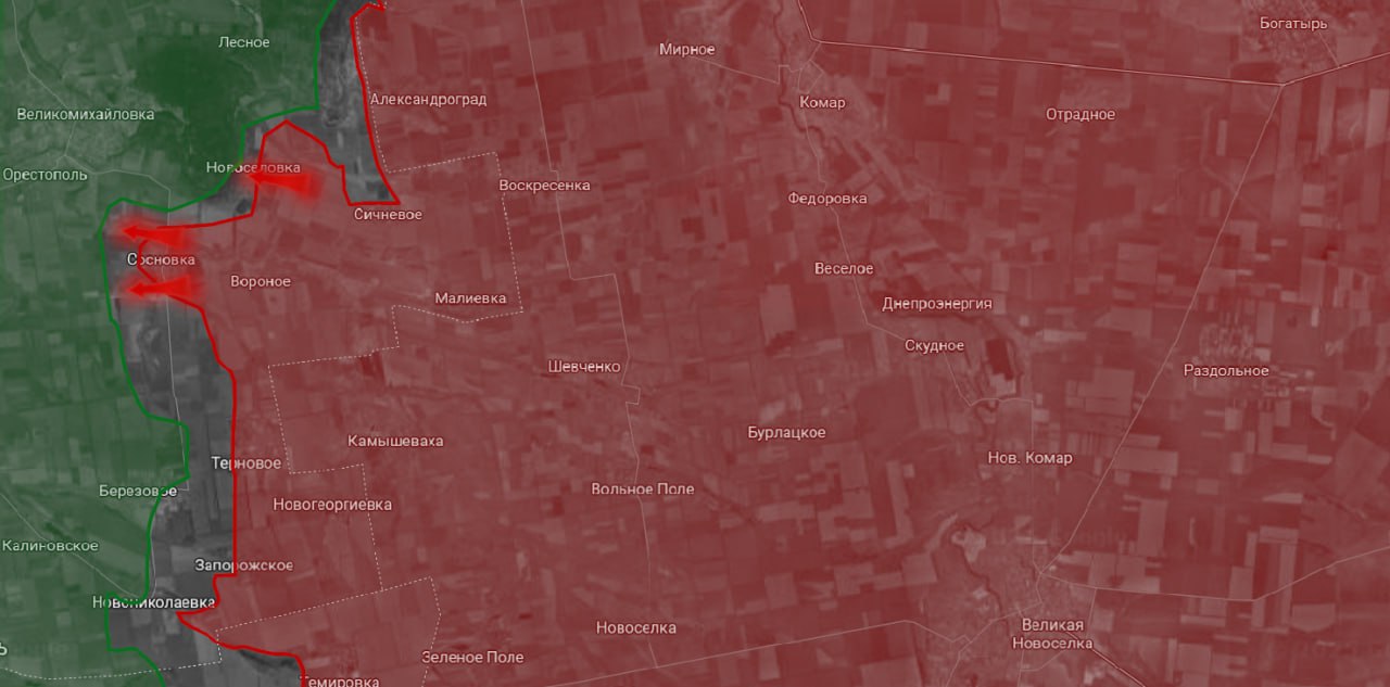 Южнее Сосновки российские войска активизировали штурмовые действия в направлении Орестополя, используя тактику малых групп и плотное огневое сопровождение.