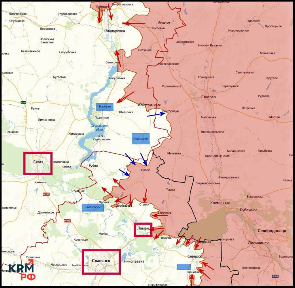 Российские войска продвигаются в районе Красного Лимана и продолжают освобождать Ямполь Российские вооруженные силы улучшили свое тактическое положение, продвигаясь с восточного направления к Красному Лиману. Одновременно ведутся активные боевые действия в районе населенного пункта Ямполь.