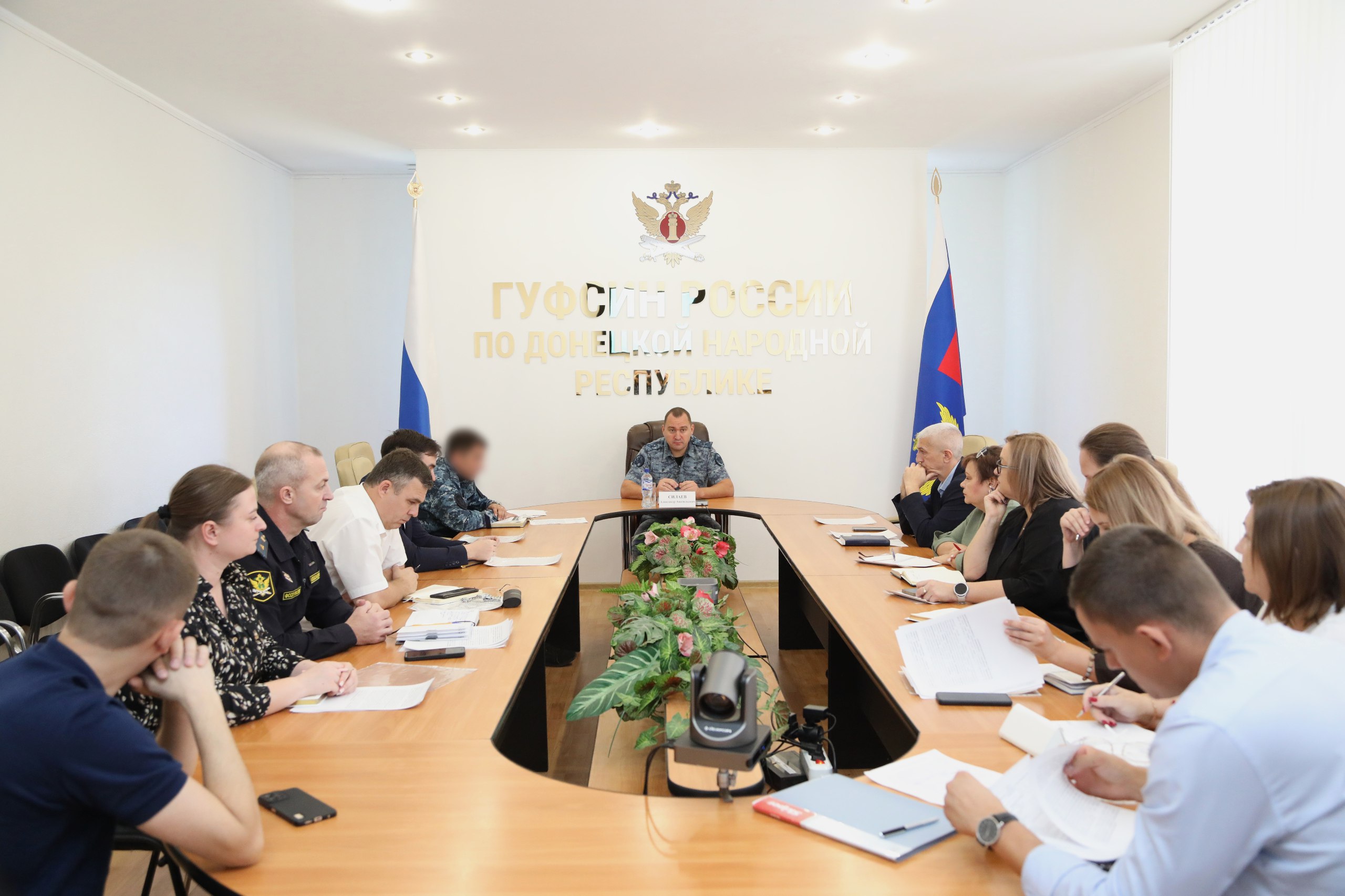 В Главном управлении ФСИН России по Донецкой Народной Республике состоялось рабочее совещание под руководством начальника ГУФСИН генерал-майора внутренней службы Александра Силаева. В мероприятии приняли участие представители республиканских министерств и ведомств.