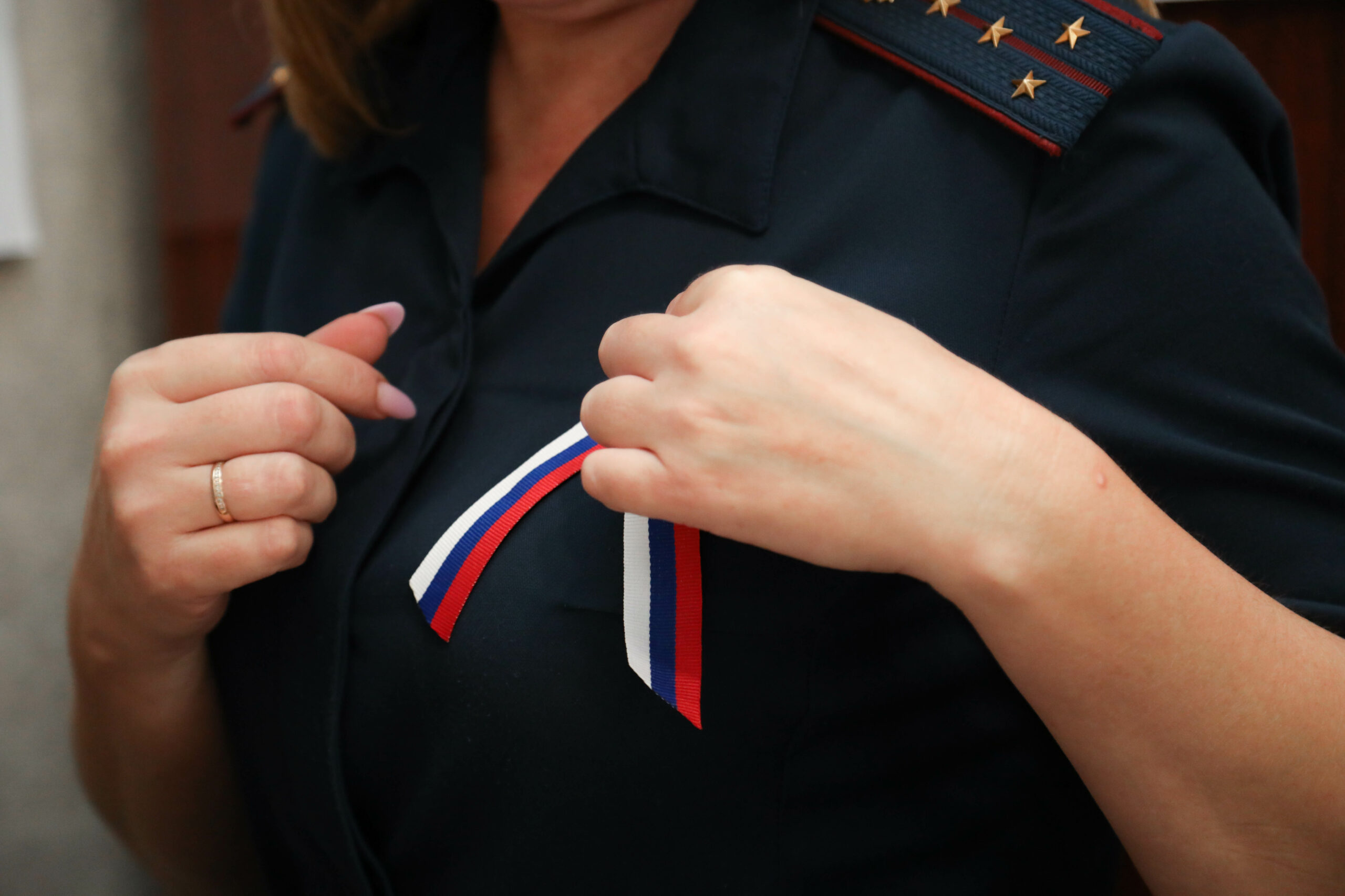 Организаторы рассказали, что цвета флага символизируют важные качества: белый — благородство, синий — верность и честность, красный — смелость и отвагу. Вручая ленточки, они поздравили коллег с праздником и пожелали всегда проявлять эти черты в своей работе.