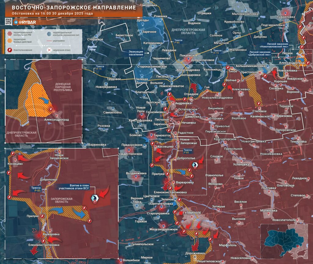 К вечеру 30 декабря на ряде направлений продолжаются интенсивные боевые действия. Одновременно с этим украинские власти объявили эвакуацию жителей приграничных сёл Черниговской области. Сообщения с линии соприкосновения указывают на высокую активность на Северском, Запорожском и Сумском направлениях, а также на сохраняющееся напряжение под Славянском, Боровой и Лиманом.