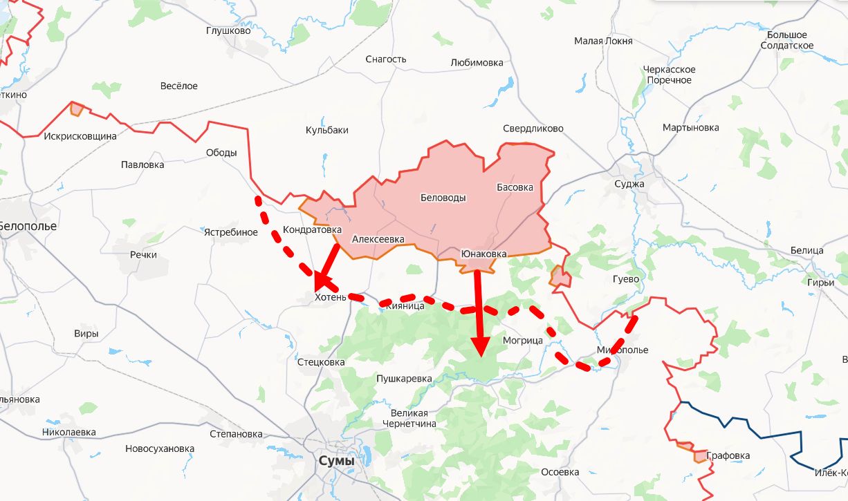 На севере Сумской области подразделения группировки «Север» взяли под контроль населённый пункт Комаровка у стыка с Брянской областью. Пока действия носят характер мобильного рейда, однако их цель очевидна — отвлечь силы противника от приграничных районов, продолжается накопление ударных сил и расширение плацдарма для развития наступления на локальном участке фронта. Для сдерживания продвижения украинская сторона перебрасывает в Сумской и Краснопольский районы значительные силы беспилотных расчётов, которые выжигаются нашими специалистами БПЛА до прибытия на ПВД в доль линии боевого соприкосновения.