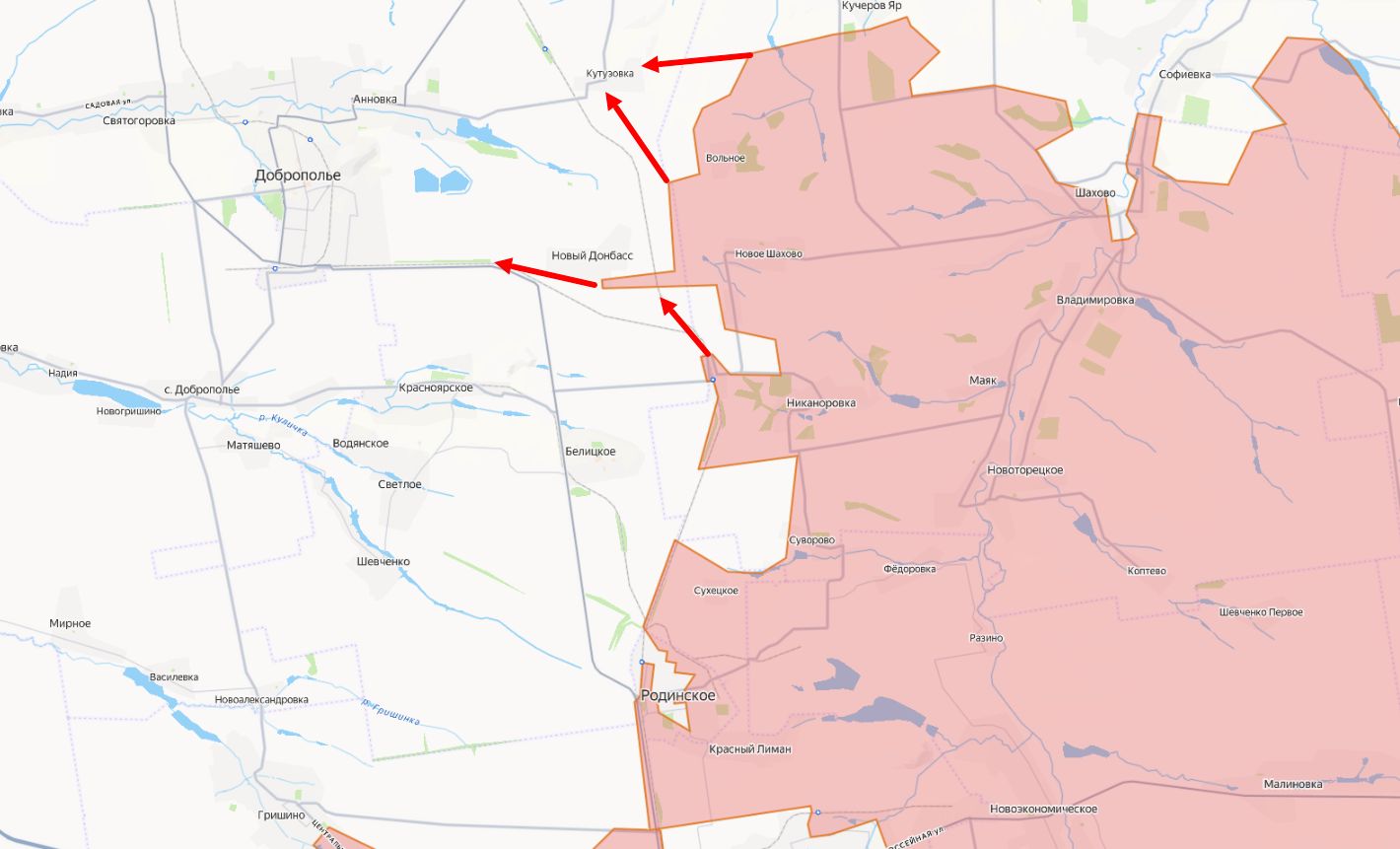 Попытки украинских подразделений прорваться к окружённым силам в Димитрове также не увенчались успехом. Российские подразделения установили контроль над большей частью населённого пункта Светлое. Противник продолжает удерживать узкий коридор между Светлым и Димитровом, рассчитывая на возможную деблокаду, однако перспективы такого сценария оцениваются как минимальные.