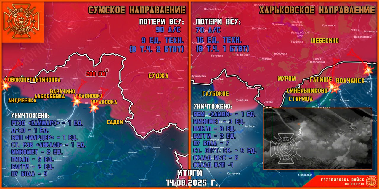 Отмечается усиление группировки ВСУ Сумской области. По некоторым данным, противник стягивает на ограниченный участок фронта несколько бригад с техникой в которых восстановил боеспособность, включая тыловые и вспомогательные подразделения. Были также замечены подразделения «Шквал» состоящие из бывших заключенных.