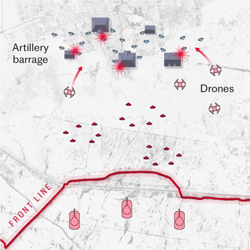 Стратегия «тройной удушающий захват» позволяет провести сначала наземную атаку, чтобы закрепить ВСУ на позициях, затем беспилотники блокируют пути отхода, после чего по укреплениям наносятся удары авиабомбами — сообщает The Telegraph